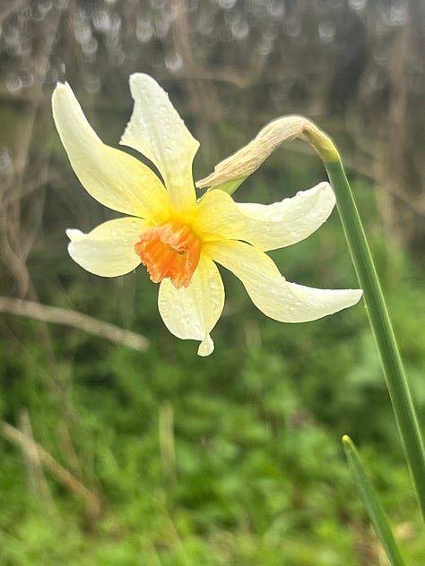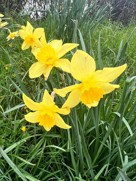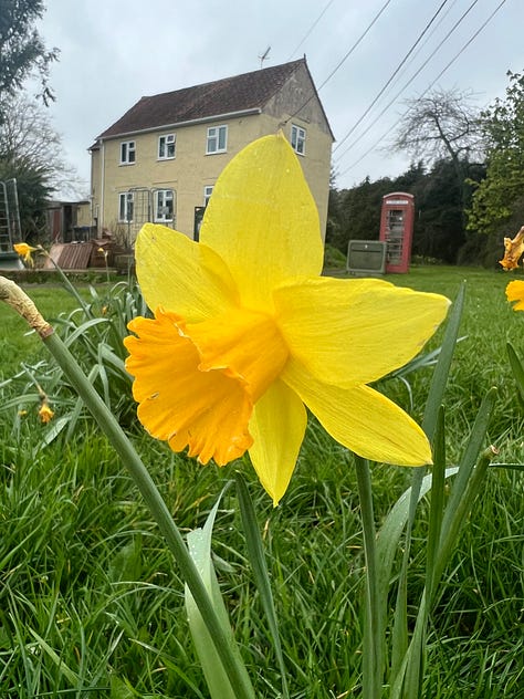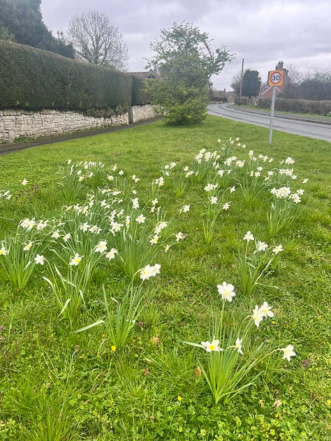 Last Friday, I was going to visit one of my fellow trainee speakers in Wiltshire. I decided to leave home early and detour into Dinton on the way there. It was a nice day, and Dinton turned out to be a pretty little village. Sure enough, there were various verges and green spaces, planted with different varieties of Narcissi. I did wonder what any locals thought of me taking photos of the daffs on their verges. But I’m sure that anyone involved in the Dinton Daffodil Project would have appreciated my interest.
